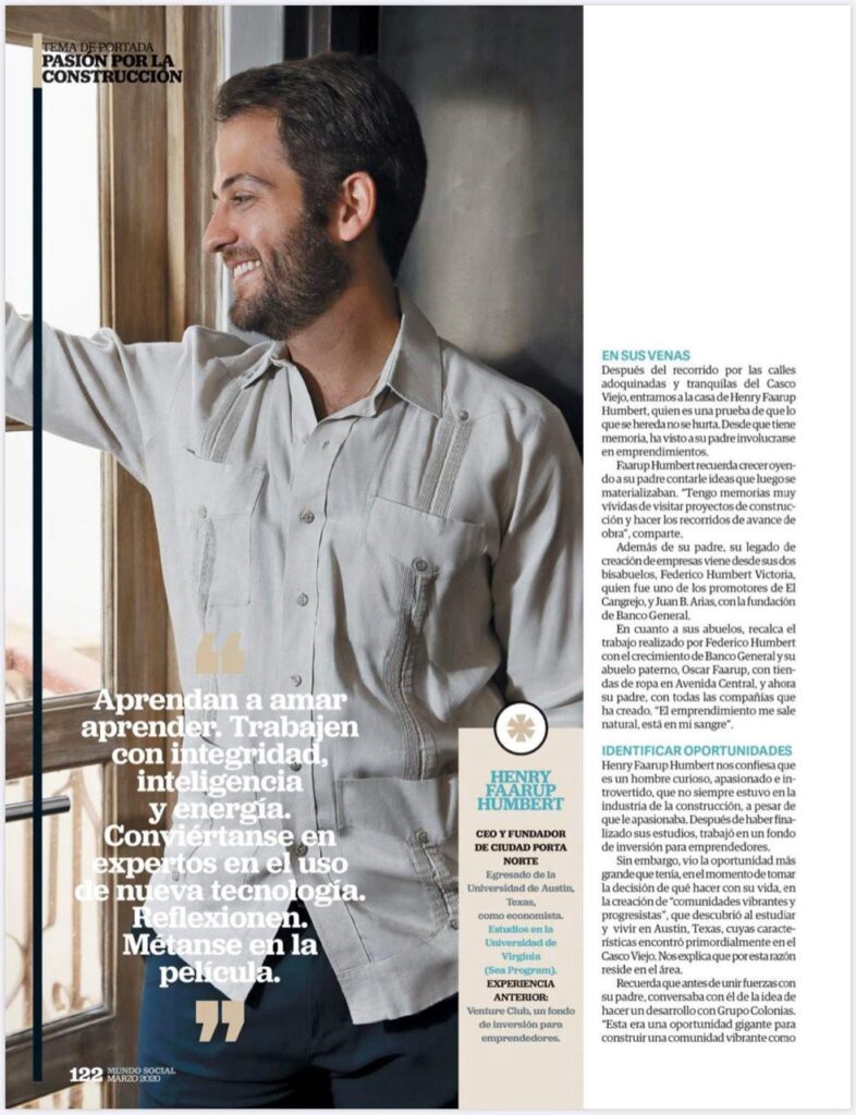Junto a su hijo Henry Faarup Humbert se prepara para su próximo reto: Ciudad Porta Norte, un proyecto que sigue el modelo de las ciudades europeas románticas con casas y edificios bajos, de arquitectura colonial, comercios y restaurantes, templos, escuelas, centros deportivos y de salud de fácil acceso.